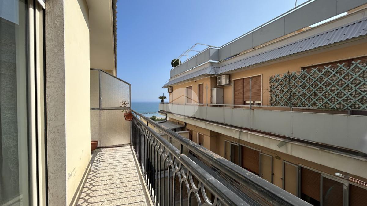 Nel cuore di Grottammare, in posizione centralissima e a soli 100 metri dal mare, proponiamo in vendita luminoso appartamento panoramico situato al settimo ed ultimo piano di palazzina servita da ascensore. L’immobile si sviluppa con una distribuzione funzionale degli spazi ed è composto da ampio soggiorno, cucina abitabile, camera matrimoniale, camera doppia e bagno finestrato con box doccia.Il vero punto di forza è il terrazzo perimetrale panoramico, che regala una splendida vista sul mare Adriatico e suggestivi scorci sul caratteristico Borgo Antico di Grottammare. Grazie alla posizione strategica nel centro cittadino, vicino a spiaggia, servizi, negozi e lungomare, questa soluzione rappresenta un’ottima opportunità sia come prima casa, sia come casa vacanze o investimento immobiliare sulla Riviera delle Palme.